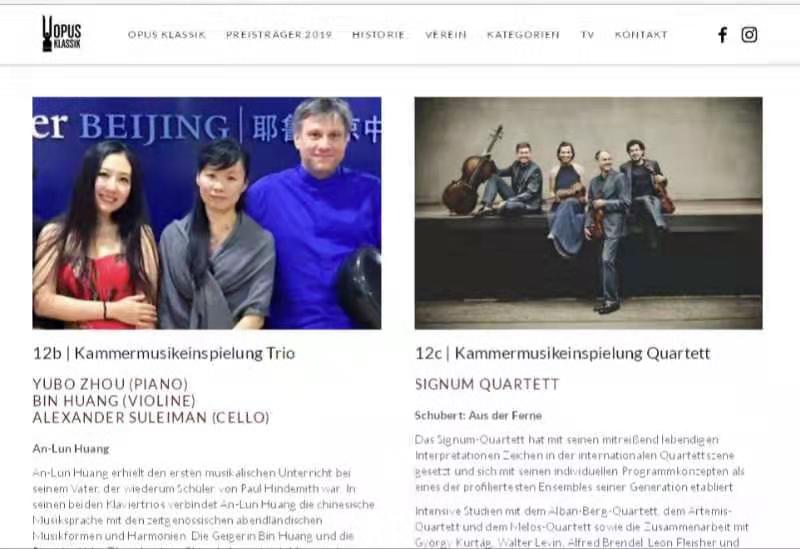 德国古典音乐奖(OPUS KLASSIK),是2018年起新设立的取代德国回声奖(ECHO),并延续其使命颁发给古典音乐家的国际最高奖项之一。今年10月13日,主办方将在柏林音乐厅举行颁奖典礼,德国中央电视二台ZDF将现场直播。