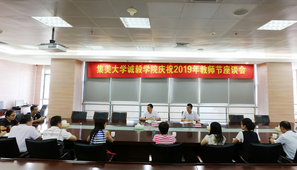 为庆祝中华人民共和国成立70周年,弘扬新时代尊师风尚,9月9日下午,诚毅学院在景祺楼17楼会议室举行庆祝2019年教师节座谈交流活动。学院党委书记林斯丰,党委副书记、院长梁新潮出席活动,与学院青年教师代表共话学院发展,交流探讨如何共创“一流诚毅”。