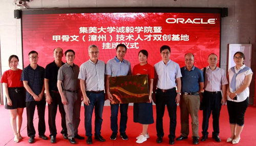 近日,诚毅学院与甲骨文(漳州)技术人才双创基地签约暨揭牌仪式举行,学院副院长黄义新,信息工程系、中软国际互联网学院、对外合作交流部、就业办相关负责人出席仪式。