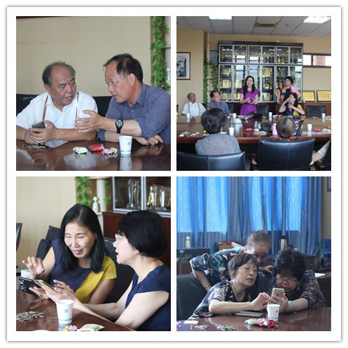 座谈会上,难得相聚的老教师们在轻松愉快的氛围中互相交谈,回忆过往趣事、交流生活感悟。