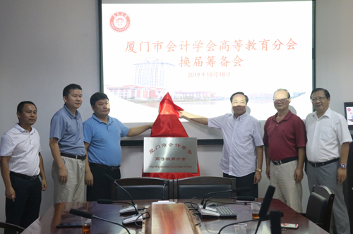 与会领导共同为厦门市会计学会高等教育分会揭牌。