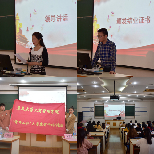 11月27日,工商管理学院举办以“发扬诚毅校训·锻造管院青年”为主题的第八期“青马工程”大学生骨干培训班开班式暨第七期“青马工程”大学生骨干培训班结业式。学院党委副书记林芙蓉、全体辅导员参加了开班式。