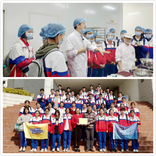 学院副院长李健介绍了学校和学院情况;学院有关老师向厦门六中学生科普了食品安全知识,带领他们参观灿英楼实验室、体验烘培制作。学院2016级保研学生代表还与厦门六中学生们进行了大手拉小手生涯访谈活动。