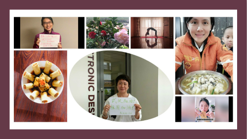 学院女教职工积极参与此次活动。学院陈妤姍老师分享了她家天台种植的绚丽多姿的多种花卉,李洁老师展示了其和两胞胎女儿的精彩魔术表演,吴梦春老师独具匠心录制了长达6分钟的炸鸡排演示视频,韩跃老师分享了其优美的健身瑜伽;学院其余女教职工也纷纷秀出了自己居家防疫的厨艺作品,在线上上演一场美食PK赛。活动期间,学院女教职工还为抗疫送上祝福,表达了战胜疫情的信心和决心。