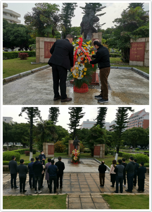 学院师生们首先对严力宾塑像周边进行了清扫。随后,全体人员在严力宾塑像前肃立,学院党委书记郁军态和副院长戴乐阳代表全院师生向严力宾烈士敬献了花篮,并表达了深切的缅怀和崇敬之情。全体人员向严力宾塑像行鞠躬礼,并默哀。