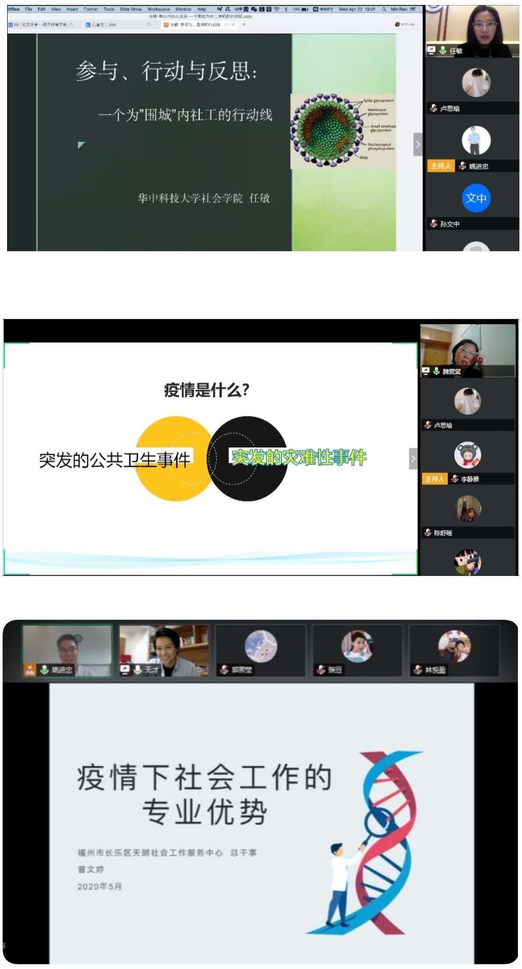 在华中科技大学社会学院任敏副教授主讲的题为“参与、行动与反思:一个‘围城’内社工的行动线”的讲座中,任敏从“城内”的认知展开,通过真实的案例,结合自己的行动研究讲述了“城内人”冷静之后的参与和专业行动历程,阐述了“围城”内社会工作者角色的演进;并在暂失监护儿童救助的行动研究中反向而思、比较而行,进一步思考非常时期与平常时期的社工行动与专业服务。她指出,在特殊时期的实践无法套用平常时期的模式和经验,应注重情境性,感同身受地进行服务;疫情下的行动要考虑社工行动合法性的推进。