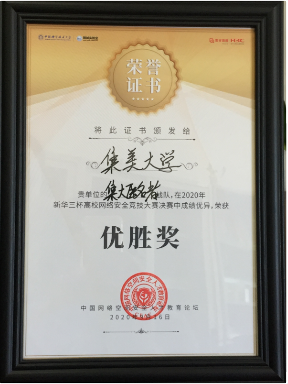 9月16日,在安徽省合肥市举行的2020年“新华三杯”高校网络安全竞技大赛决赛上,由我校信息化中心薛芳、王以勒等老师组成的队伍获得优胜奖(第九名)。
