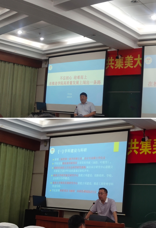 9月30日下午,工商管理学院在学院B506报告厅召开全院教职工大会。会议由学院党委书记陈福昌主持。