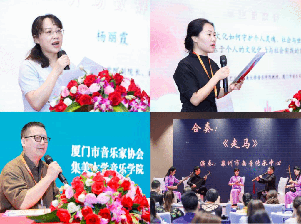 学院教授、厦门市音乐家协会主席臧艺兵基于其个人的文化体验与社会实践的理论实践就“文化如何守护个人灵魂、社会与世界”这一话题发表了主旨演讲,臧教授首先阐述了文化的基本概念与构成,其次从个人文化经验的角度来分析文化对于个人灵魂、社会秩序、世界和平等问题的影响。演讲过后,泉州南音乐团为在座的嘉宾们带来了唱谱、清唱、合奏及齐唱等6个南音作品,让理论与舞台做了生动地结合。