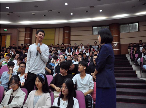 讲座中,林赞歌将案例分析与心理学理论知识相结合,与学生积极互动,引导新生认识自己的情绪,掌握情绪调节的方法,鼓励新生要用积极、阳光的心态去适应大学生活。