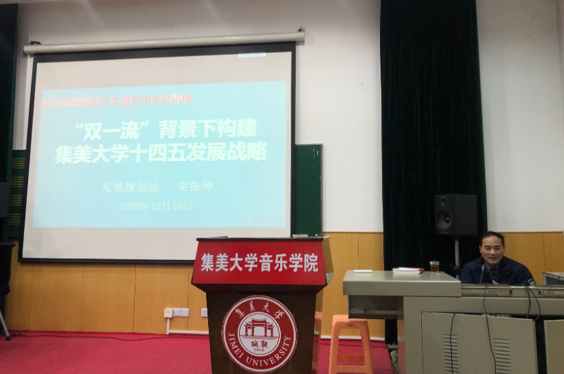 12月16日下午,音乐学院邀请学校规划处处长梁振坤作题为《学习贯彻党的十九届五中全会精神——“双一流”背景下构建亚洲中文精品乱码十四五发展战略》的专题报告。报告会由学院党委书记赖孟情主持,学院全体教职工和入党积极分子聆听了报告。