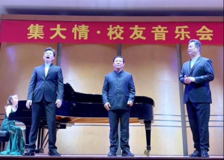 音乐学院2003级校友梁少伟、曹飞,现为汉乐坊国际声乐学校创始人/校长、副校长,各自带来了2首经典独唱曲目及5首歌曲联唱。