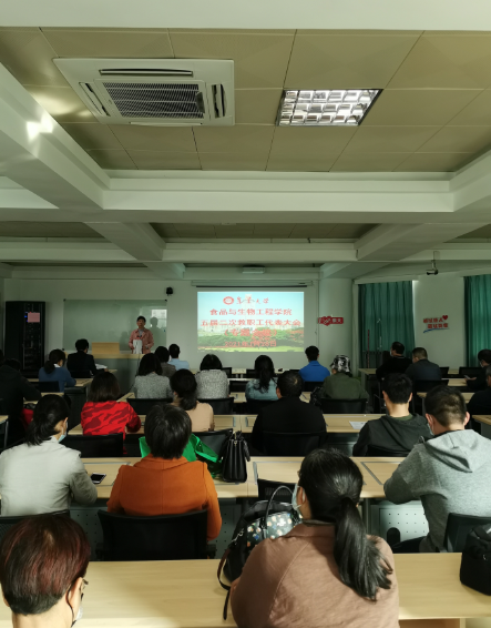 1月26日下午,食品与生物工程学院五届二次教职工代表大会(专题会议)在灿英楼四楼多功能厅召开。