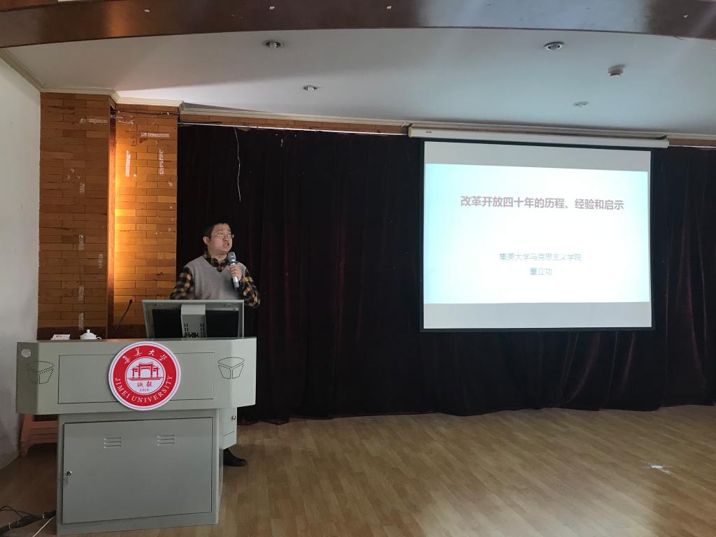 3月24日下午,海外教育学院在学院三楼多功能厅举办了以“改革开放四十年的历程、经验和启示”为主题的党史学习教育宣讲报告会,我校马克思主义学院教师董立功博士主讲。宣讲报告会由学院党委书记吴建平主持,全院教职工、学生党员以及入党积极分子参加会议。