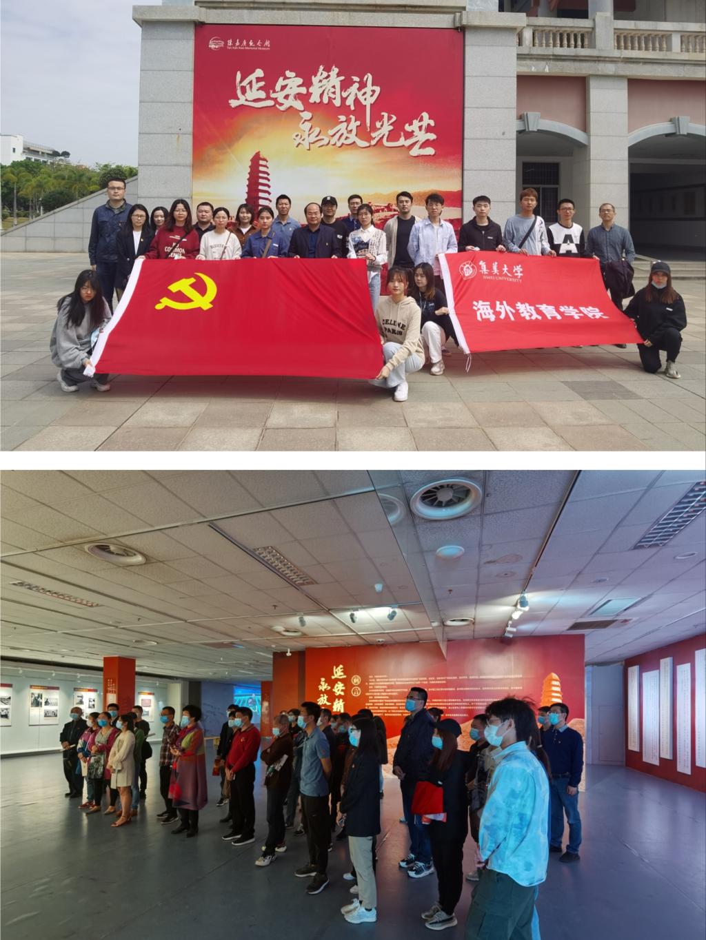 4月7日下午,海外教育学院学生第一、第三党支部组织支部党员、预备党员和学生入党积极分子到集美嘉庚纪念馆参观“延安精神 永放光芒”主题展览,开展“不忘初心•砥砺前行”党史学习教育主题党日活动,追忆党的光辉历程,缅怀革命先辈,发扬红色传统,赓续红色基因。