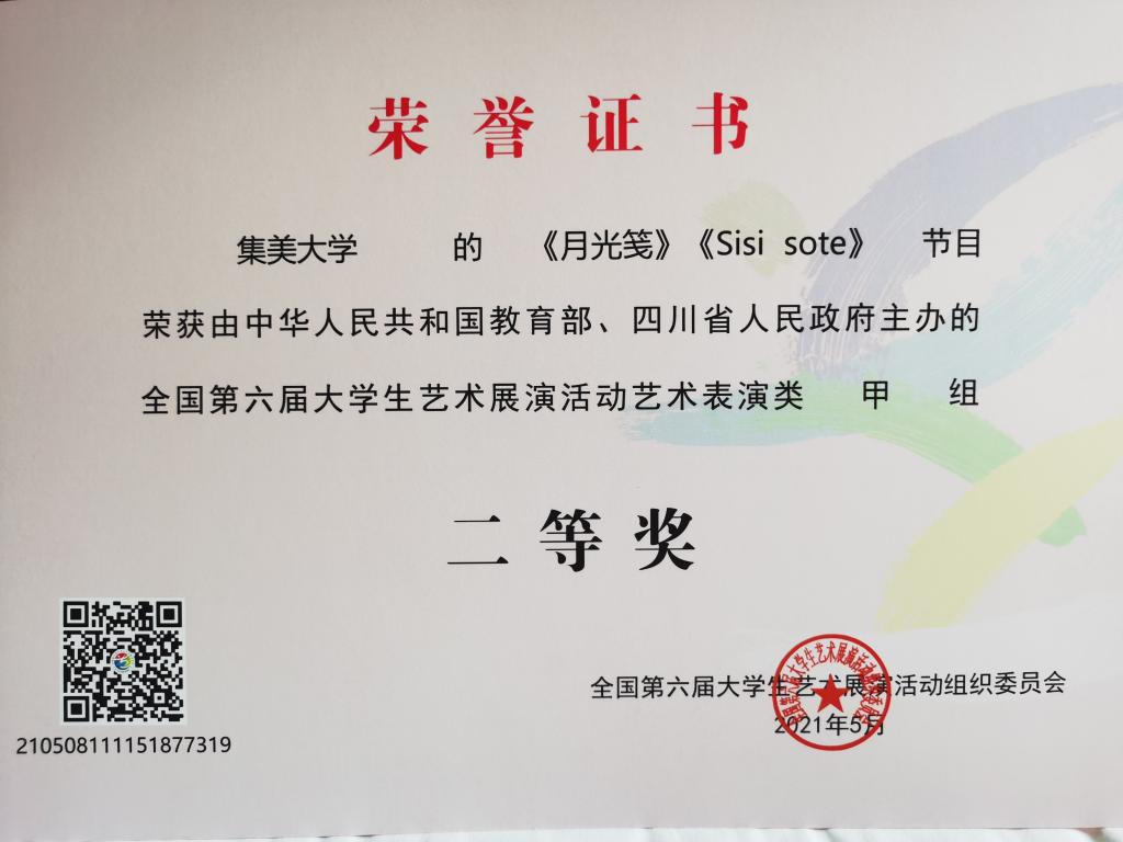 近日,由中华人民共和国教育部、四川省人民政府主办的全国第六届大学生艺术展演活动落下帷幕,师范学院教师林靖、教师林雨诗指导的沐音合唱团合唱作品《月光笺》、《Sisi sote 》获得该活动省赛艺术表演类甲组一等奖、国赛艺术表演类甲组二等奖。