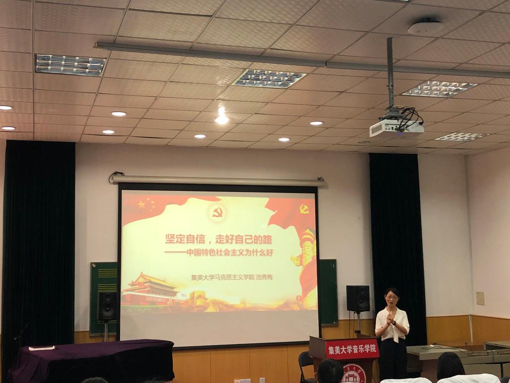 5月8日下午,音乐学院举办党史教育专题讲座。讲座邀请马克思主义学院教师池秀梅作了题为《坚定自信,走好自己的路——中国特色社会主义为什么好》的专题辅导,学院全体教职工聆听宣讲。