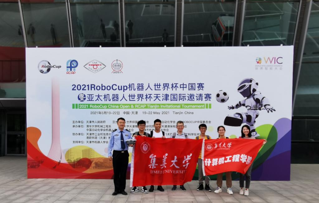 在2021RoboCup机器人世界杯中国赛大学组比赛中,计算机工程学院徐向东、郑家雯、李剑铭、李夏萌四位同学组成亚洲中文精品乱码JMURobot1代表队,在指导老师王罡,带队老师王丰、陈鲁琳的带领下,斩获RoboCup足球机器人--仿真3D组一等奖。