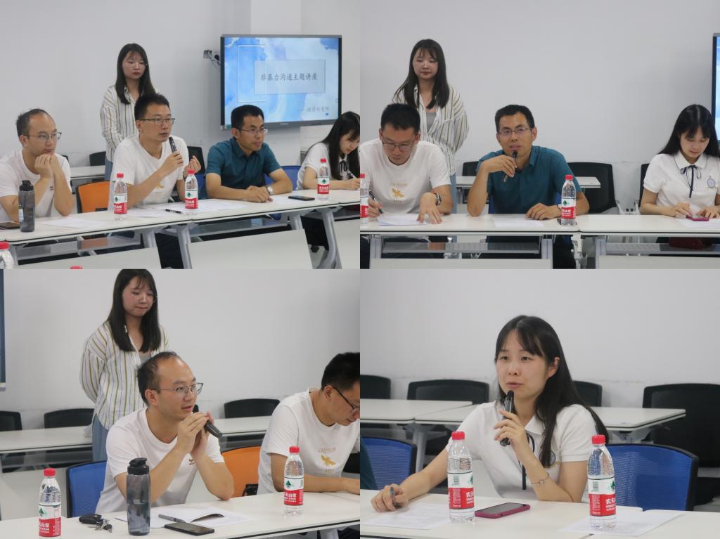 活动中,谢清彬就“非暴力沟通”这一主题展开讲解。他指出,在沟通中进行换位思考、互相理解的重要性,强调在描述事情时不要使用绝对性、结论性的语句;观察是减少暴力沟通的第一步,观察时不要妄加猜测、评断,在交流中要主动表达自己的感受和诉求,学会以合适的方式拒绝。随后,同学们自由讨论,就朋友关系、舍友关系与亲子关系等多种人际关系存在的问题进行探讨,解决疑惑。最后,在场老师与同学进行合影留念。