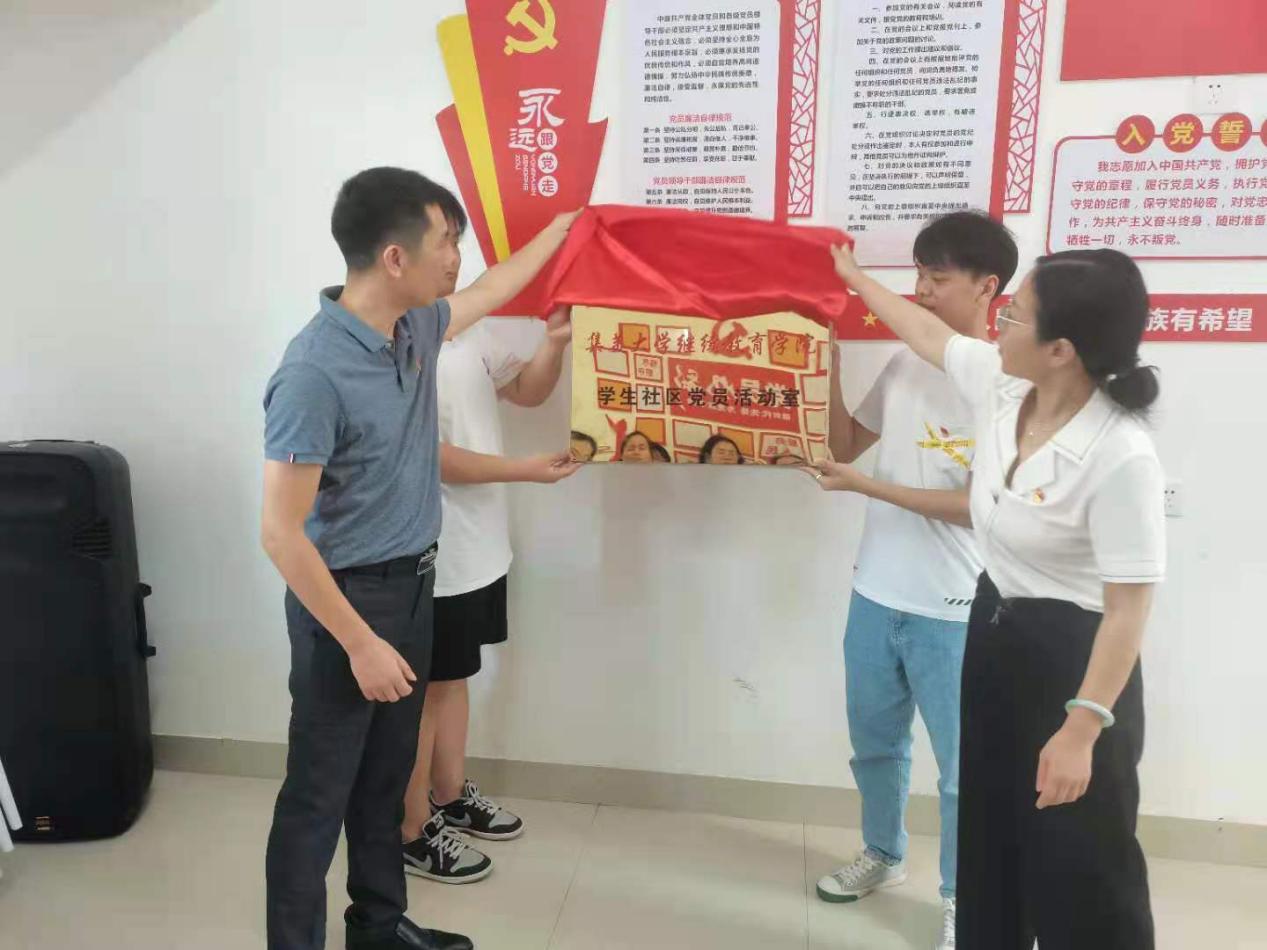 6月30日下午,继续教育学院学生社区党员活动室揭牌仪式在水院1号楼公寓举行,学院党委书记王小军、副书记陈辉、组织员兼院办主任李健平、院团委副书记唐荣斌、全体辅导员、学生党员代表参加仪式。