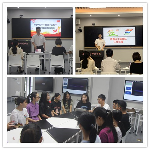7月9日上午,师范学院于吕振万智慧教室举行2021年暑期“三下乡”社会实践活动出征仪式。学院党委副书记郑秀坤、团委副书记邹雅真、辅导员郭靖雯、全体实践队带队老师及队员参加。