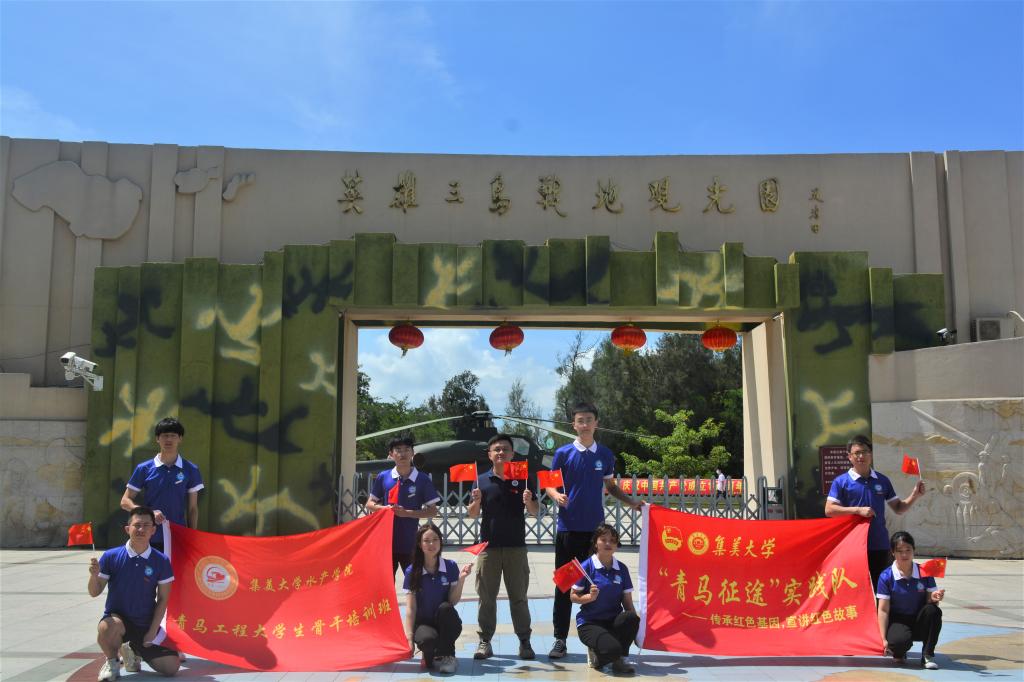 八名成员在领队老师王鹏的带领下,在水产学院门口集合,举行实践队出发仪式。成员们进行了庄严的出征宣誓。随后,队员们乘车前往英雄三岛战地观光园。抵达目的地后,首先进入精神主题馆参观,在讲解员绘声绘色的介绍下,队员们站在三岛发展历史的立足点上对英雄三岛精神有了崭新的认识。