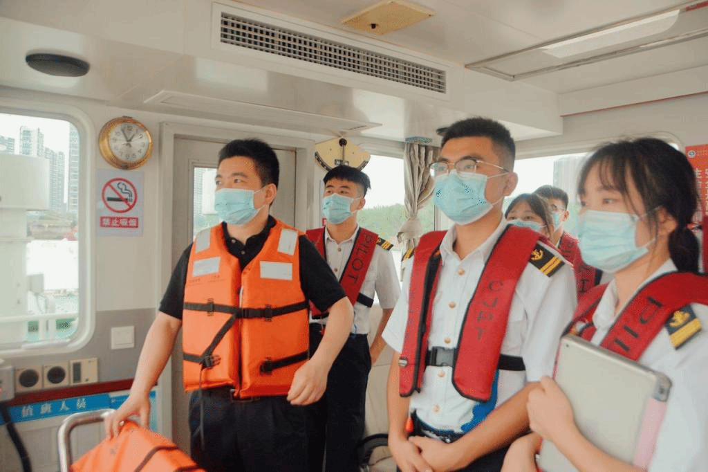 根据体验学习计划,引航中心为实践队安排两部分学习环节。一是乘坐引航艇现场观摩引航员交接班,展示了长江引航中心“把世界引进长江,把长江引向世界”的使命及抗疫时期引航员“白衣为甲、执甲出征,奔赴水上国门”的坚守。实践队员了解引航员的工作内容和方式,沉浸式体验让实践队员体会到引航员工作的艰辛,感受长江引航中心为长江经济带的发展做出的贡献。