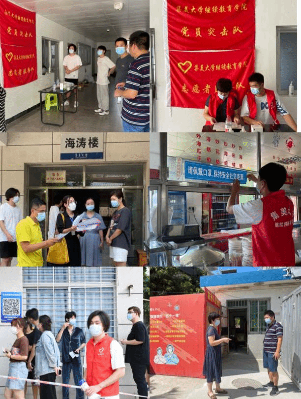 为全力做好校园疫情防控工作,阻断疫情传播风险,切实保障师生生命安全和身体健康,继续教育学院组织开展“同心抗疫 争当先锋”志愿服务活动,党员、师生志愿者们积极参与志愿服务活动。