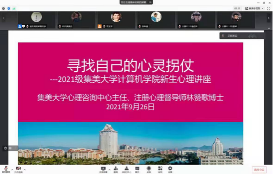 为缓解当前疫情形势下的学生心理压力,加强学生心理自我疏导能力,筑牢抗击疫情心理防线,9月26日,计算机工程学院邀请校心理咨询中心主任林赞歌为学生开展线上心理健康教育专题讲座,本次讲座以2021级新生为参与主体,面向全院学生开放。