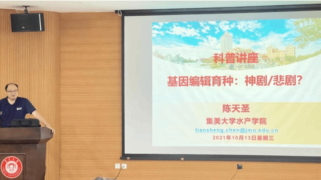 10月13日下午,为激发学院学子对科学研究的兴趣,水产学院陈天圣教授开展了题为“基因编辑育种:神剧/悲剧?”的科普讲座。基因编辑技术自问世以来一直饱受争议,陈天圣以多年在基因编辑方面的科研经验,结合生活中的相关热点话题,向同学们生动形象地介绍了基因编辑育种的发展和优点。