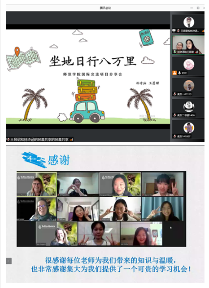 分享会上,叶文婷、王昌珺、林诗涵、李庆琳4位同学分别就参加“2021寒假宾夕法尼亚大学创新与领导力英语项目”“2021寒假斯威本科技大学英语语言文化项目”“2021暑假新加坡国立大学项目”“2021暑假新西兰幼儿教育师范学院项目”的心得体会进行了分享。最后,谢书书就我校国际交流项目的相关政策进行了讲解。