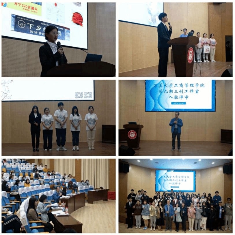 近日,工商管理学院于学术报告厅举办了第九届三创工作室入驻仪式,学院各专业学生代表到场参加。
