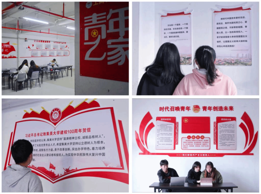 “青年之家”是共青团主动适应新时代团员青年分布聚集特点和青年工作多样化需要,推进团的建设创新的一种平台型、枢纽型组织形态。学院积极搭建“青年之家”平台,整合已有资源,涵盖包括“师说心语”空间、读书漂流角、学生自习室等学生共享空间,加入中国共产主义青年团大事记、团员的权利和义务、入团誓词、《光荣啊,中国共青团》曲谱等元素,在思想引领、社会实践、心理健康等方面更好的服务团员青年健康成长成才,让“青年之家”在学党史传承精神,办实事为民服务方面发挥作用。