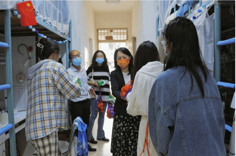 民商海商法党支部为全院师生送去日用品及防疫物资,支持学院疫情防控工作。防疫物资包括口罩、消毒湿巾、食品、水果等。海洋文化与法律学院党委书记黄煜、党委副书记陈开燕、全体辅导员、学生干部、志愿者和法学专业的学生代表共同参加宿舍走访和物资发放。