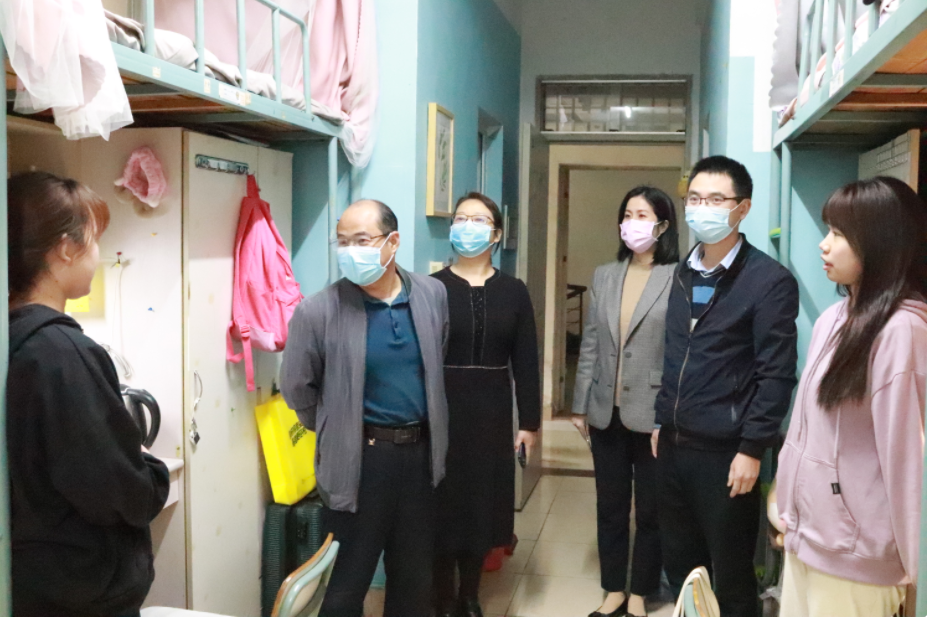 3月23日,师范学院党委书记田建和、院长赵红霞、党委副书记张鸿、副院长梁虹及全体辅导员深入学生宿舍,关心了解学生在疫情防控期间的学习生活。