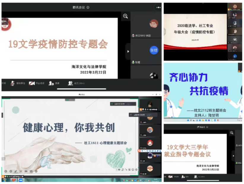 五是充分发挥班主任、科任教师的协同育人作用,组织各年级开展线上班会。分析社会面疫情形势,强调疫情期间学校管理条例纪律,开展线上心理疏导,为毕业班开展特别就业指导,注重消除“疫情”之下的各项恐慌,同时,提醒学生警惕疫情期间的电信诈骗。