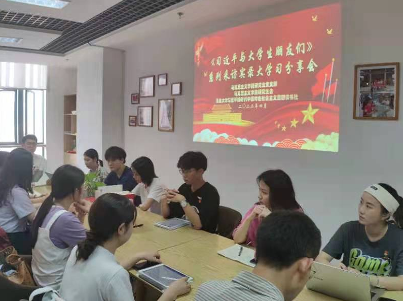 学院“学生习近平新时代中国特色社会主义思想读书社”邀请师范学院、海洋文化与法律学院、港口与海岸工程学院读书社部分社员参加了《习近平与大学生朋友们》系列采访实录学习分享会。学院还组织团员们一起学习了习近平总书记在中国人民大学考察时的重要讲话精神。青年学生们通过理论学习,深刻领会习近平总书记对青年学生弘扬家国情怀、引领社会进步寄予的厚望。
