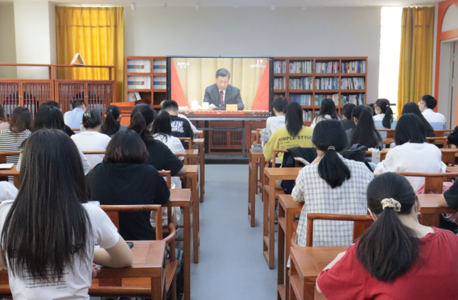 5月10日上午,庆祝中国共产主义青年团成立100周年大会在北京隆重举行。中共中央总书记、国家主席、中央军委主席习近平出席大会并发表重要讲话。师范学院组织师生认真观看此次大会。