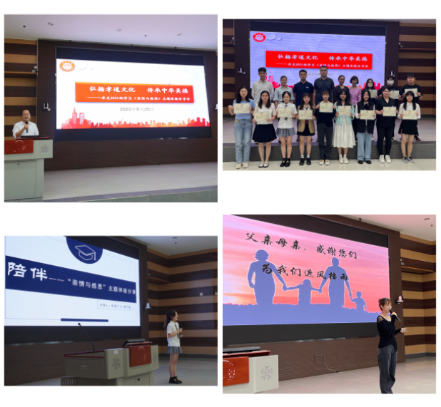 交流会上,同学们通过PPT演讲形式,以“亲情胜于万情”“让爱与感恩同行”“陪伴”“静思往事,爱在流”“用心尽孝”等为主题,分享自己对孝道与亲情的体验,意识到当下的幸福来之不易,表示将以感恩之心认真学习、严于律己,提升服务社会的能力。
