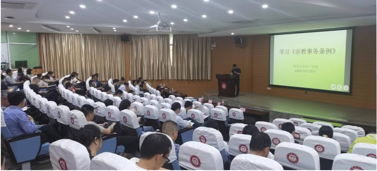 5月25日下午,水产学院组织全院教职工学习国务院《宗教事务条例》和《福建省宗教事务条例》。