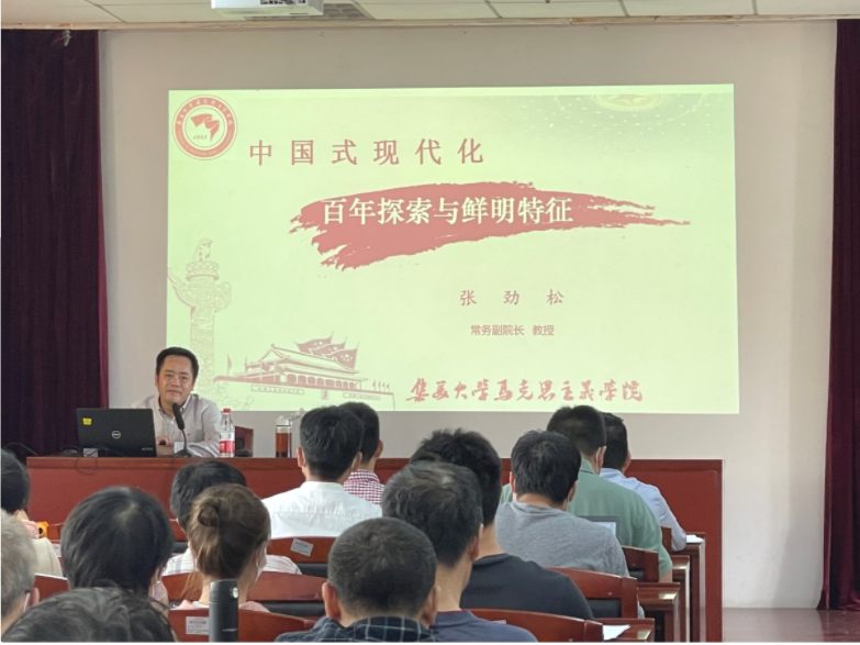 张劲松围绕中国式现代化百年探索的过程及鲜明特征展开讲述,重点阐述了新民主主义革命的重要意义,并对新中国成立后政治、工业、生态、经济等方面取得的成就进行详细讲解。