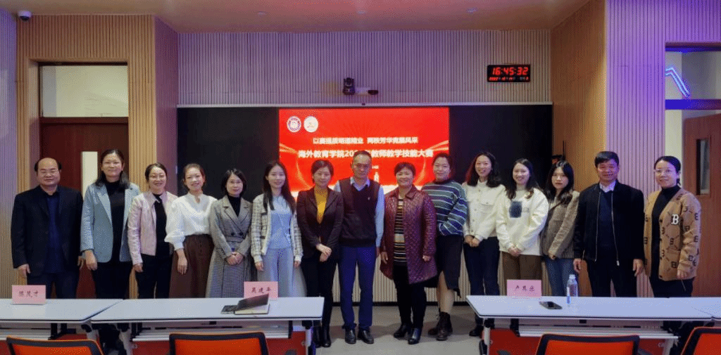 在海外教育学院成立20周年之际,学院举办“以赛提质明道精业 两秩芳华竞展风采”教师教学技能大赛。比赛形式分为初赛和决赛,主要内容为教学设计、课堂教学和教学反思。12月14日下午,比赛总结表彰大会召开,学院全体教职工参加大会。