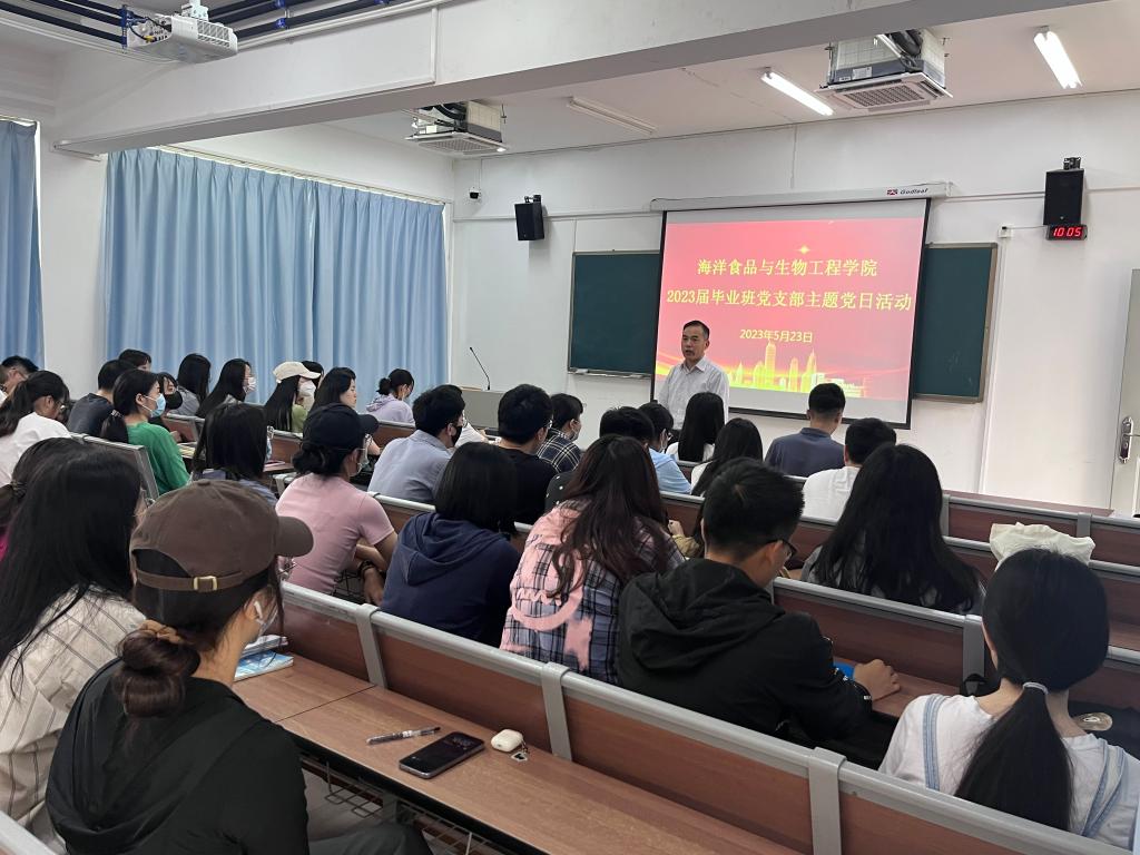 5月23日,海洋食品与生物工程学院2023届本科生和研究生毕业班党支部联合开展主题党日活动。院党委副书记朱坤道,党委组织员和毕业班辅导员参加活动。