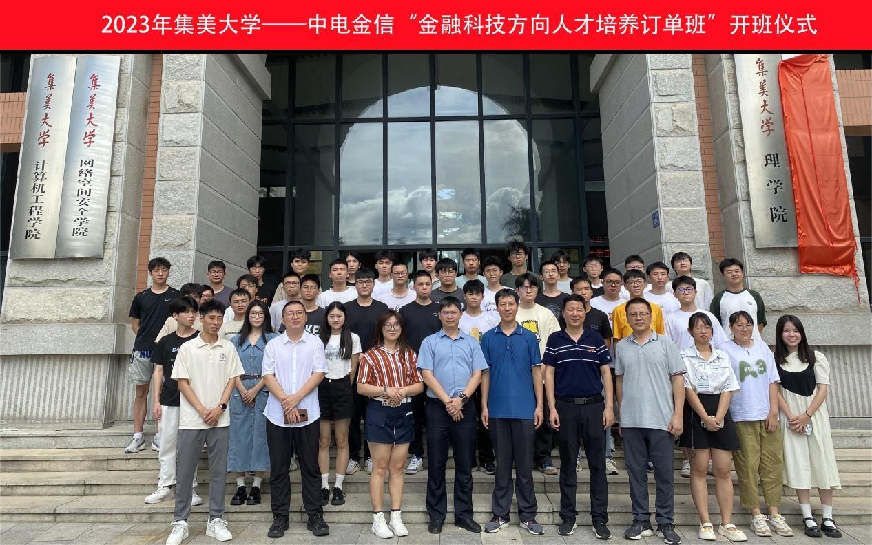 6月26日上午,计算机工程学院举行中电金信软件有限公司合作签约暨2024届共建班启动仪式。学院副院长付永钢、党委副书记叶烽,中电金信软件有限公司数字化营销与移动金融事业部副总经理沈彬彬、高级业务咨询顾问邓仕光等以及2020级参训学员参加仪式。