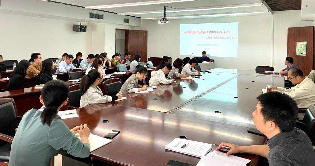 为深入学习贯彻习近平新时代中国特色社会主义思想,11月29日,财务处邀请马克思主义学院董立功副教授作题为“以中国式现代化全面推进中华民族伟大复兴----认真学习贯彻党的二十大精神”专题辅导报告,财务处全体人员到场聆听。