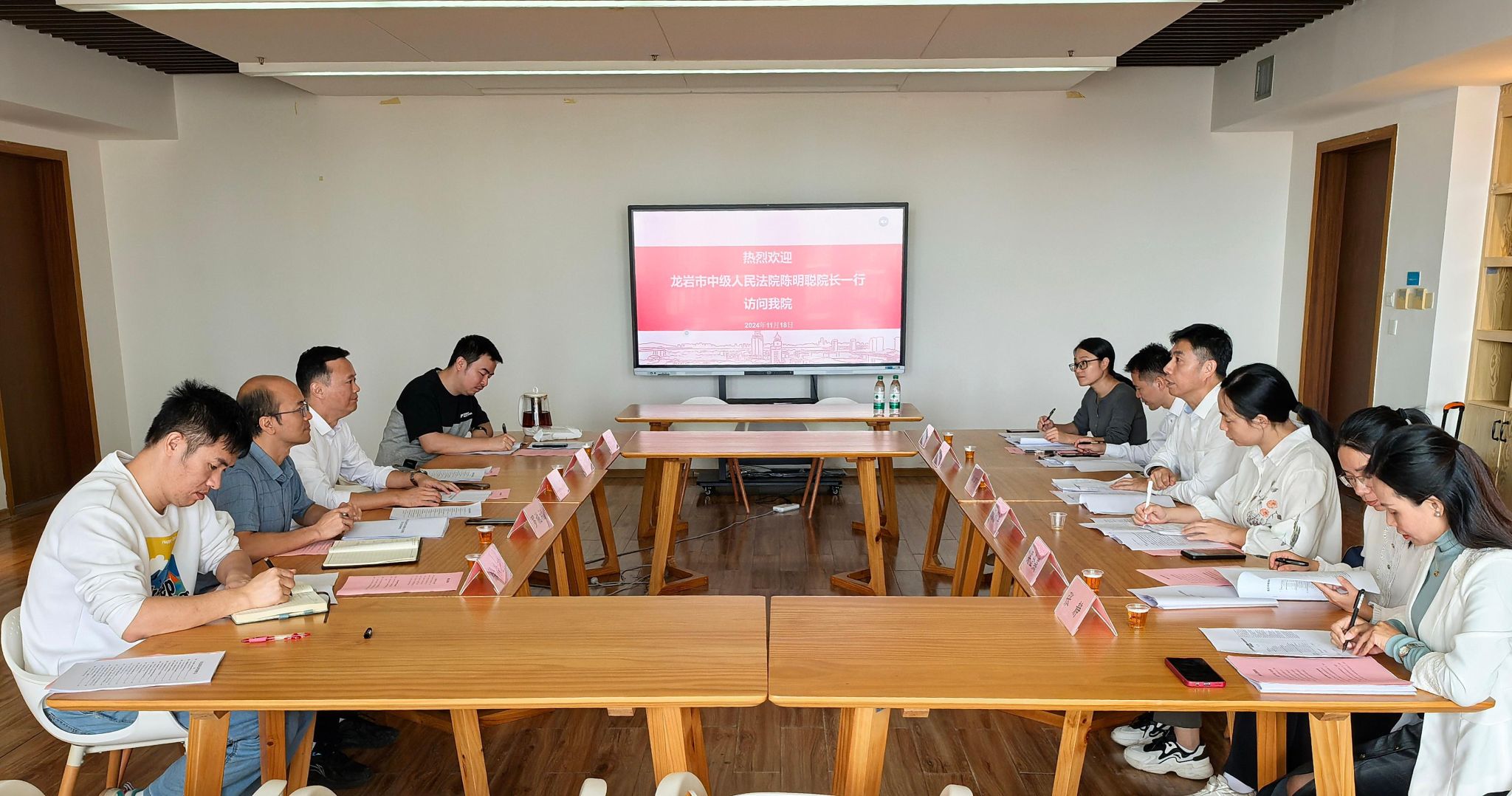 11月18日上午,龙岩市中级人民法院党组书记、院长陈明聪一行到海洋文化与法律学院调研交流。院党委书记陈志鸿,院长姚进忠,副院长罗施福,法律系教师代表等参加交流。