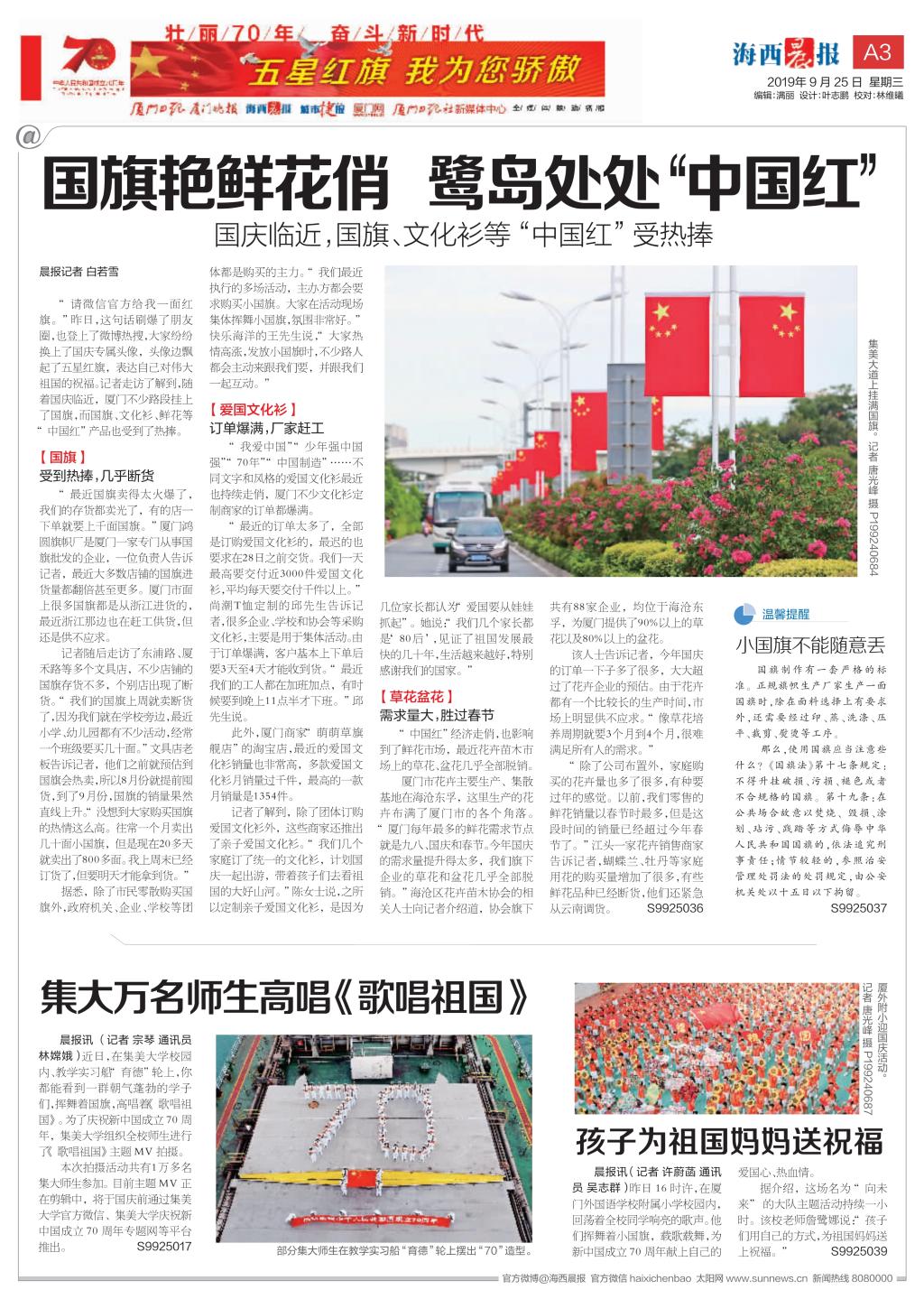 2019年9月25日·海西晨报· 第A03版 · 重点关注