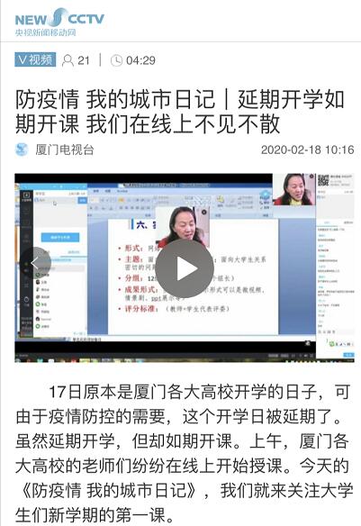 厦门大学教授 原宗丽:因为网上课堂是不同于线上课堂的,我就是担心网上课堂会发生一些难以预期的问题,所以一开始上课还是有点小忐忑的。所以我在给学生上课讲第一句话的时候,我也在讲我说其实今天我也是一个学生,我是网络的新手。对于网络来讲我也是个学习的过程。