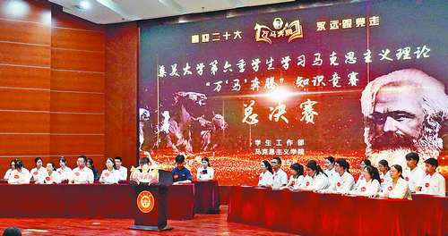 今年,第六季学生学习马克思主义理论“万‘马’奔腾”知识竞赛面向全校学生推出“网络生存赛”以遴选10位晋级赛选手,与18个学院推荐的90名选手共同参与晋级赛。“网络生存赛”的创新推出,进一步扩大竞赛影响力,调动更多学生的参与积极性。数据显示,全校共有1.6万名学生报名参加“网络生存赛”,活动专题页面浏览量近20万人次。