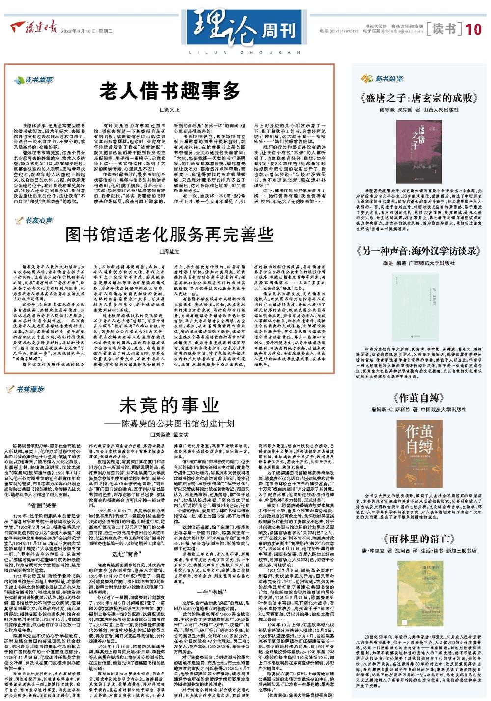 陈嘉庚是爱国爱乡的典范,其优先考虑在家乡创办图书馆,也是人之常情。1925年12月29日《申报》刊登了一篇题为《陈嘉庚将在厦门福州建图书馆》的报道,说明当时他计划办馆确实仅限厦门、福州两地。
